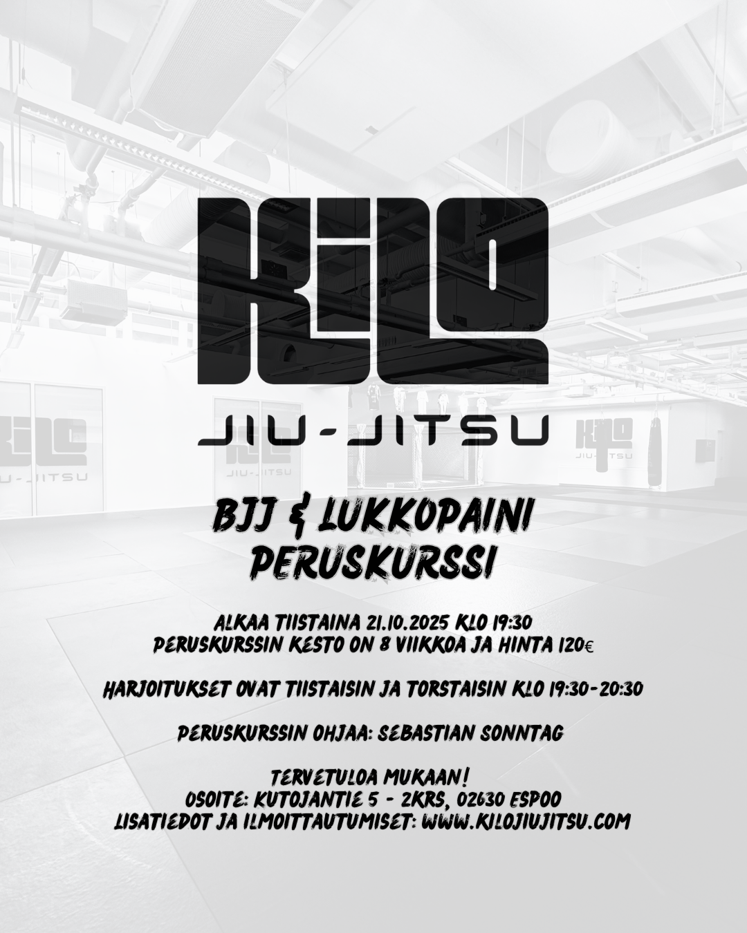 Kilo Jiu-Jitsu BJJ & NOGI PERUSKURSSI alkaa tiistaina 21.10.2025 klo 19:30.