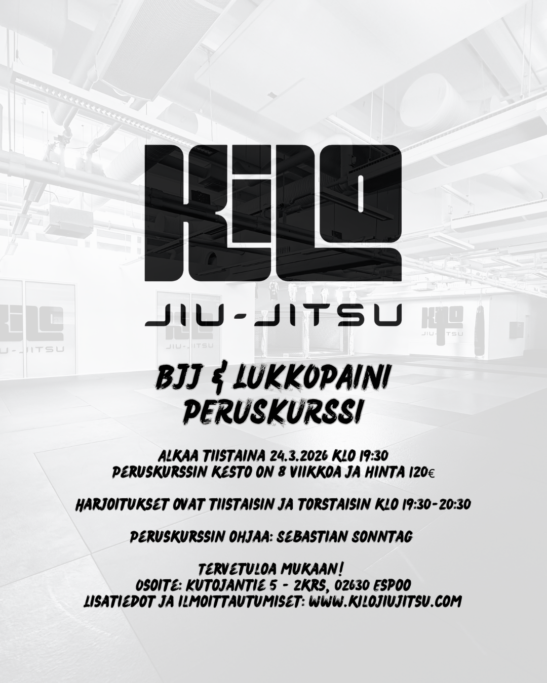 Kilo Jiu-Jitsu BJJ & NOGI PERUSKURSSI alkaa tiistaina 24.3.2026 klo 19:30.
